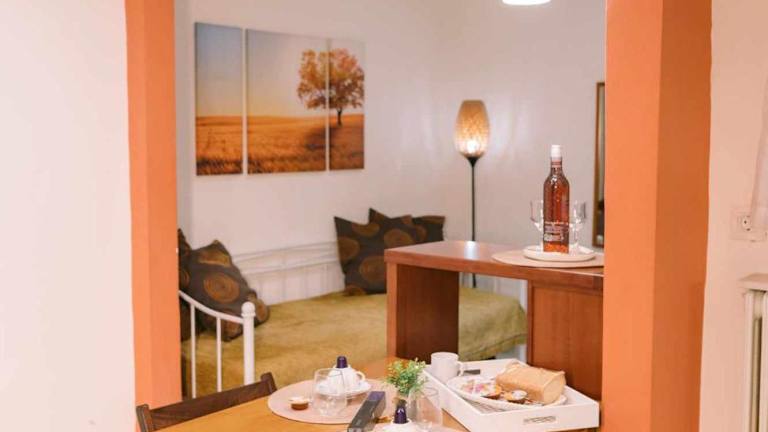 In der Unterkunft sind ein Café sowie Gartenmöbel vorhanden. Es werden Obst und Getränkebestellungen angeboten. Über die voll ausgestattete Küche in der Ferienwohnung kann eine Selbstversorgung erfolgen.