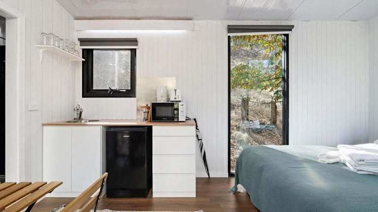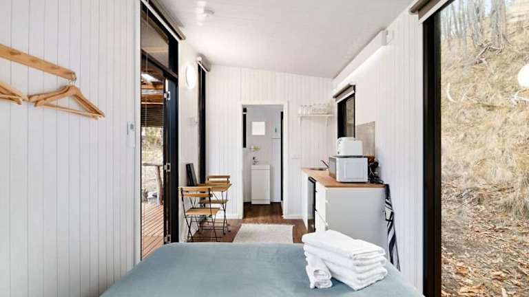 The Edge of Nowhere Chestnut by Tiny Away bietet Übernachtungsmöglichkeiten in Form eines Ferienhauses. Es handelt sich um eine private Unterkunft mit einem Schlafzimmer und Klimaanlage.