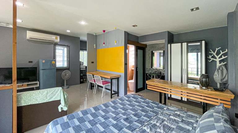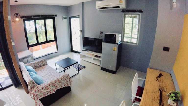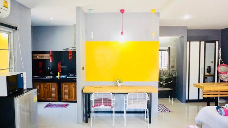 Die Ferienwohnungen verfügen über eine gut ausgestattete Küche mit Kühlschrank, Mikrowelle und Herdplatte. Jedes Zimmer ist mit einem Flachbild-TV ausgestattet. Es bieten sich Optionen für Baby- und Zustellbetten an, mit zusätzlichen Gebühren in Höhe von 100 THB pro Nacht.
