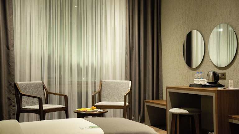 Die Zimmer im Erzurum Hotel sind komfortabel und gemütlich eingerichtet und bieten alles, was man für einen angenehmen Aufenthalt benötigt. Jedes Zimmer verfügt über einen Sitzbereich, Sat-TV, einen Safe und ein eigenes Badezimmer mit einer Dusche, kostenlosen Pflegeprodukten und einem Haartrockner. Bettwäsche und Handtücher werden gestellt, um den Gästen den bestmöglichen Komfort zu bieten.