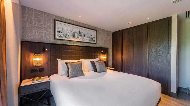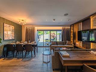 Die Stadthäuser im The Fellows House Mews sind sorgfältig gestaltet und erstrecken sich über zwei Etagen. Im Erdgeschoss finden Sie moderne Wohn- und Essbereiche sowie eine voll ausgestattete Küche. Eine Außenterrasse lädt zum Entspannen und Genießen der frischen Luft ein. Im Obergeschoss befinden sich drei geräumige und stilvolle Zimmer, jedes mit einem luxuriösen Kingsize-Bett und einem eigenen Badezimmer. Die Zimmer bieten maximalen Komfort und eine stilvolle Atmosphäre.