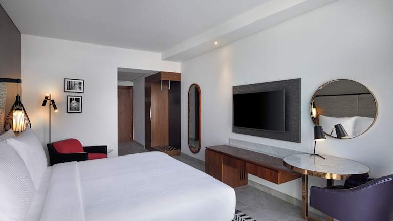 Die Zimmer sind mit Klimaanlage, einem Schreibtisch und einem Balkon mit Stadtblick ausgestattet. Jedes Zimmer verfügt zudem über ein eigenes Badezimmer, einen Flachbild-TV, Bettwäsche, Handtücher sowie einen Kleiderschrank und eine Kaffeemaschine. Rollstuhlgerechte Zimmer sind ebenfalls buchbar.