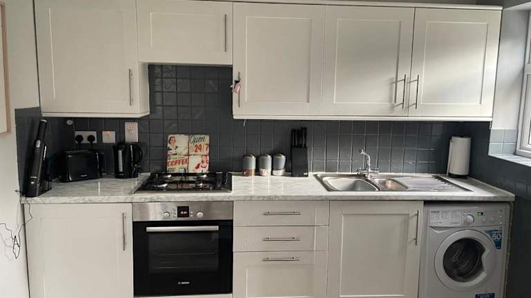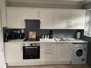 Die Ferienwohnung verfügt über ein Schlafzimmer und ist ausgestattet mit einem Flachbild-TV mit Kabelkanälen sowie einer voll ausgestatteten Küche. In der Küche finden die Gäste einen Kühlschrank, einen Ofen, eine Waschmaschine, eine Mikrowelle und eine Herdplatte vor.