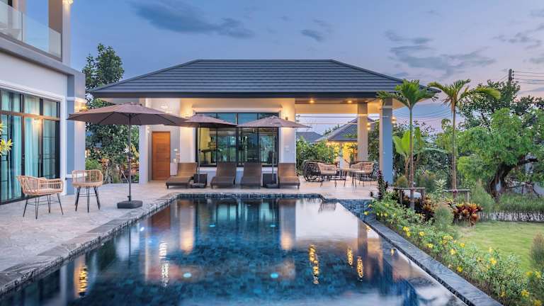 The garden pool villa resort at Doi Saket bietet komfortable Wohneinheiten mit kostenlosem WLAN und Klimaanlage. Die Anlage verfügt über einen Außenpool und einen Garten.