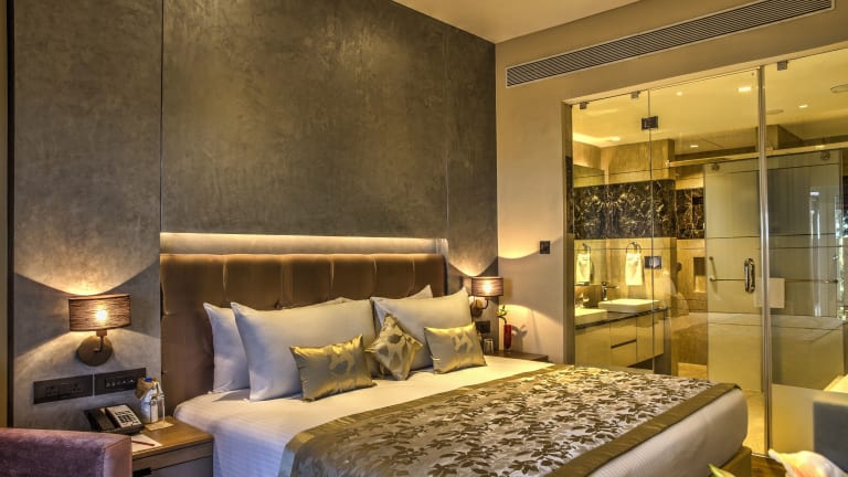 Die Zimmer im Gateway Hotel Ambad sind modern und klimatisiert. Sie bieten Gartenblick und sind mit einer Minibar sowie einem eigenen Bad mit Dusche ausgestattet. Jedes Zimmer verfügt über Annehmlichkeiten wie Bademäntel, Hausschuhe, WLAN und einen Flachbild-TV. Zustellbetten sind auf Anfrage erhältlich und es sind Nichtraucherzimmer buchbar.