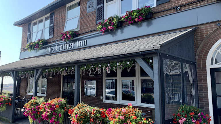 Die Speisen im Gather Inn sind hausgemacht und nutzen vorwiegend lokale Zutaten. Es gibt eine Vielzahl an Optionen auf der Speisekarte. Die hauseigenen Bars bieten eine Auswahl an Weinen, Cocktails, echten Ales, Craft-Bieren, Lager und Cidern. Eine Frühstücks- oder Brunchoption wird jedoch nicht mehr angeboten, es befinden sich jedoch zwei Cafés direkt gegenüber der Unterkunft.