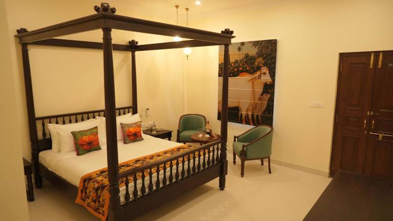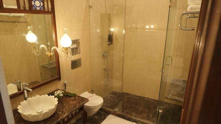 Die eleganten Suiten des Grand Imperial Heritage Hotels sind in kräftigen Farben gehalten und mit schönen Stoffen und antiken Möbeln eingerichtet. Sie bieten eine gelungene Kombination aus historischem Charme und modernen Annehmlichkeiten. Jede Suite verfügt über ein eigenes Badezimmer und bietet den Gästen einen komfortablen und stilvollen Rückzugsort.