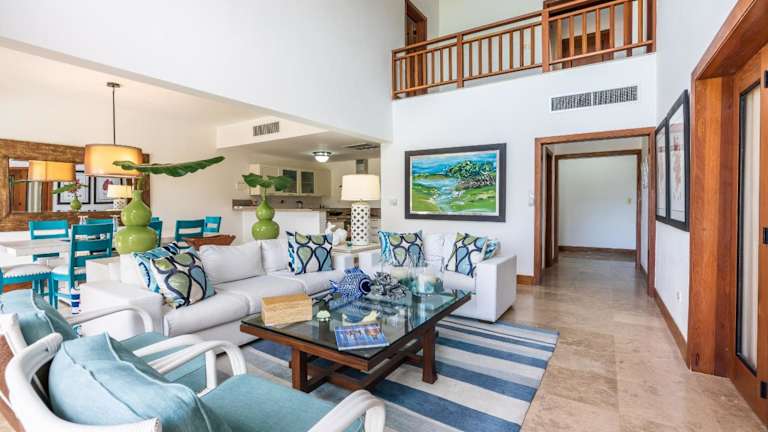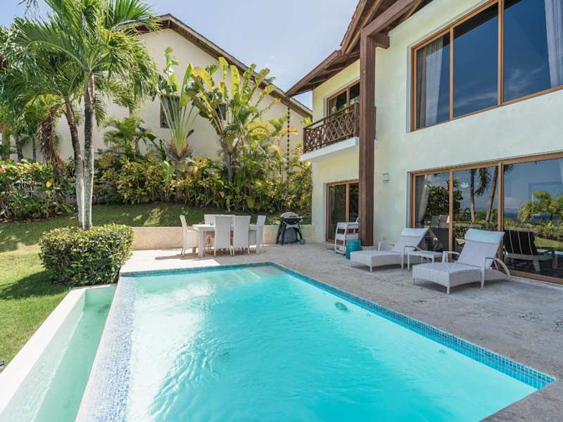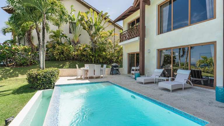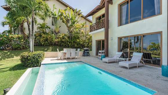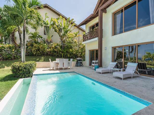 The Greatest 3BR Villa at Puerto Bahia ist eine Villa mit Blick auf das Meer und den Pool, die eine komfortable Unterkunft in einer ruhigen Umgebung bietet. Die Villa ist klimatisiert.