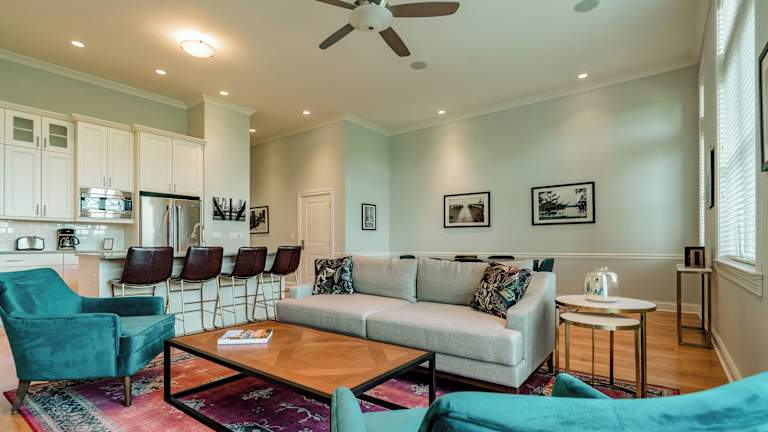 Die Suiten im Guesthouse Hotel sind geräumig und luxuriös ausgestattet. Jede Suite verfügt über eine voll ausgestattete Gourmetküche, in der Sie Ihre eigenen Mahlzeiten zubereiten können. Die hohen Decken verleihen den Zimmern ein großzügiges Raumgefühl und der private Balkon bietet einen schönen Blick auf die Umgebung. Eine Waschmaschine und ein Wäschetrockner stehen Ihnen zur Verfügung, um Ihre Kleidung zu waschen und zu trocknen. Die Grillmöglichkeiten auf dem Balkon ermöglichen es Ihnen, Ihre eigenen Grillabende zu veranstalten und die frische Luft zu genießen.