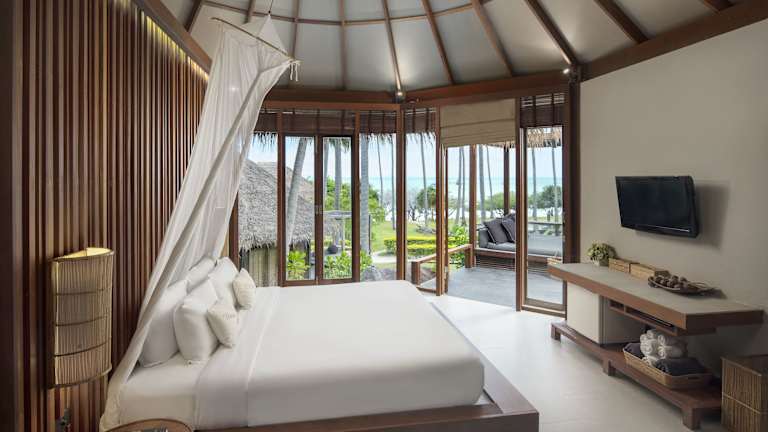Das Haadtien Beach Resort bietet geräumige Villen, die viel Komfort und Privatsphäre bieten. Jede Villa verfügt über einen eigenen Balkon und ein eigenes Badezimmer. Die Villen sind im Landhausstil eingerichtet und mit Holzmöbeln ausgestattet. Zur weiteren Ausstattung gehören ein TV, eine Minibar und ein Haartrockner. Kostenfreies WLAN ist in den öffentlichen Bereichen verfügbar.