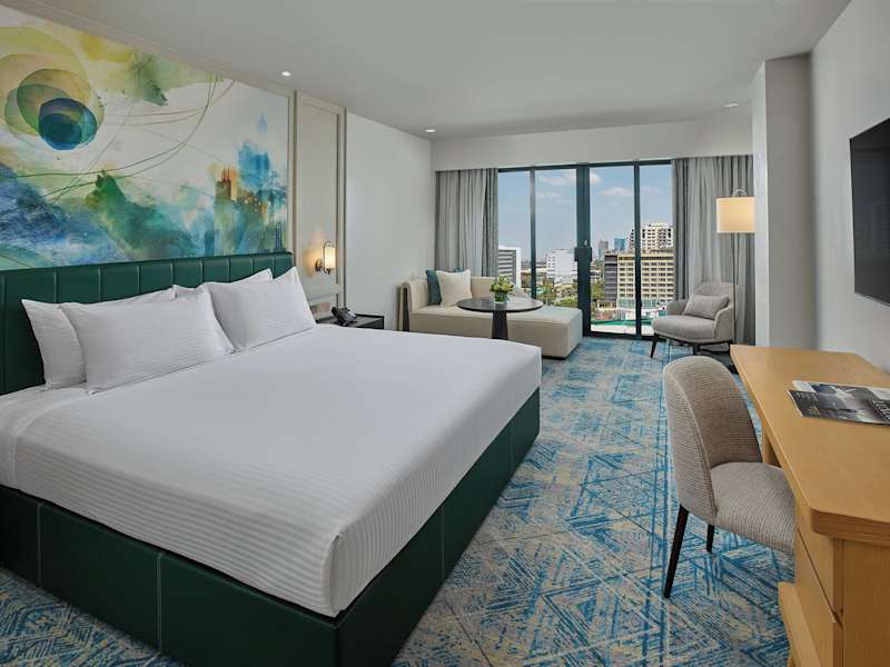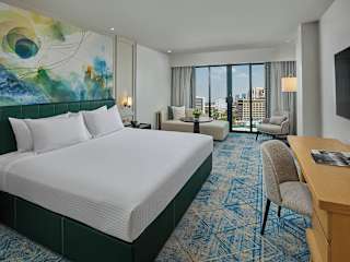 Das The Heritage Hotel Manila ist ein Deluxe-Hotel mit 450 modern gestalteten Zimmern. Es zeichnet sich durch abstrakte Kunstwerke des renommierten Künstlers Nestor Olarte Vinluan aus und bietet eine stilvolle sowie komfortable Atmosphäre. Die Unterkunft ist eine rauchfreie Einrichtung mit genehmigten Nichtraucherzimmern und behindertengerechten Angeboten.