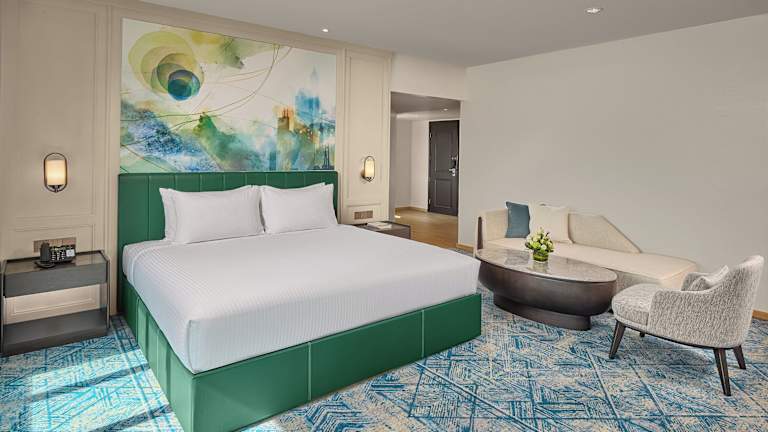 Die Zimmer sind mit einer Klimaanlage, einem Safe, einer Minibar, einem Minikühlschrank sowie einer Tee- und Kaffeemaschine ausgestattet. Zu den Annehmlichkeiten gehören auch ein Bügelset, eine Hosenpresse, ein Telefon mit Direktwahl, ein TV-Gerät mit Satelliten- und Kabelfernsehen sowie kostenfreies WLAN. Die Badezimmer sind mit Dusche und Badewanne, Haartrockner, Bademänteln und Telefon ausgestattet. Familien- sowie rollstuhlgerechte Zimmer sind ebenfalls verfügbar.