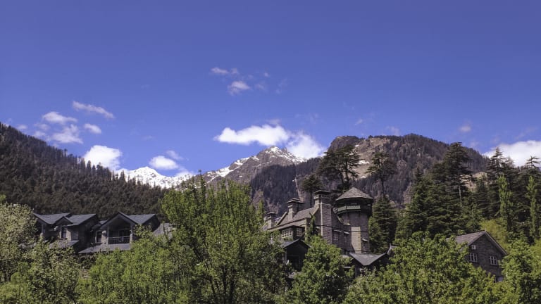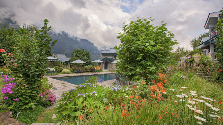 Das Hotel befindet sich in einer eigenen Sackgasse auf einer Höhe von 2003 m und ist umgeben von einem Apfel- und Kirschgarten. Es bietet einen Blick auf die Stadt Manali.