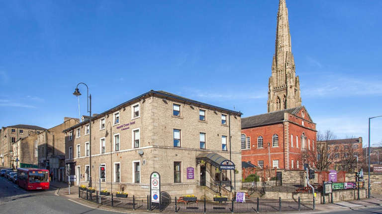 Das Imperial Crown Hotel liegt direkt im Zentrum von Halifax, gegenüber dem Bahnhof und in der Nähe von Sehenswürdigkeiten wie dem Eureka Children's Museum und dem Calderdale Art Museum. Der internationale Flughafen Leeds Bradford ist etwa 38 km entfernt. In der unmittelbaren Umgebung des Hotels finden Sie auch eine Vielzahl von Restaurants, Geschäften und Unterhaltungsmöglichkeiten.