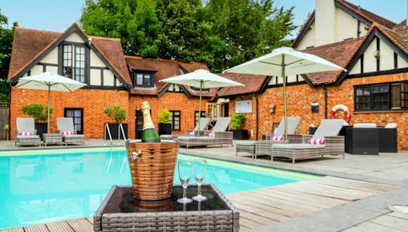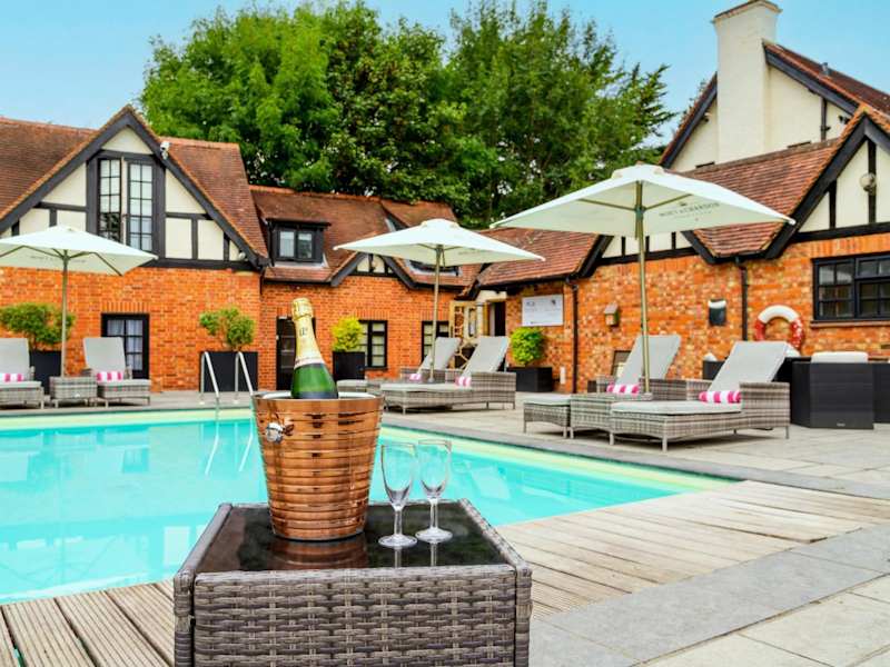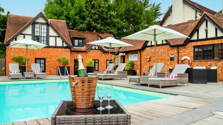 Das Hotel befindet sich im malerischen Dorf Cookham Dean, umgeben von einer ruhigen Landschaft mit einem weitläufigen Garten und einem charmanten Innenhof, die im Sommer einladend wirken.