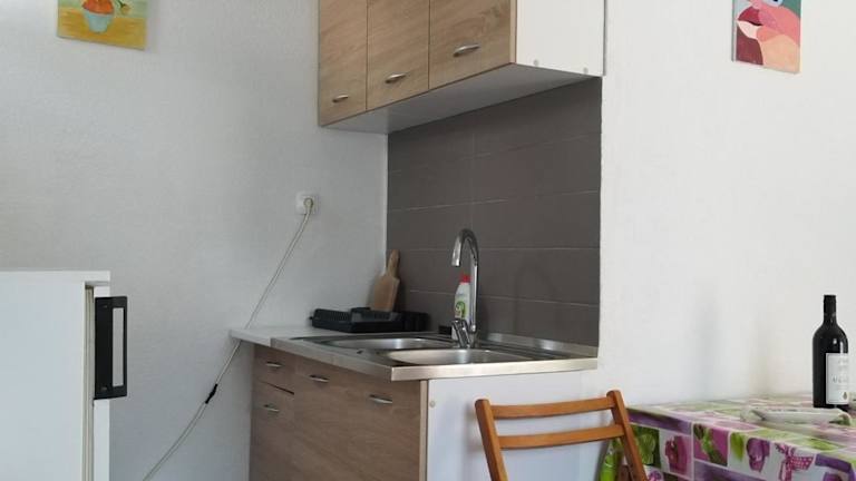 Das Ferienhaus beinhaltet ein Schlafzimmer, ein Wohnzimmer, einen Flachbild-TV und ein Badezimmer mit Dusche. Die Küche ist mit einem Kühlschrank und einem Ofen ausgestattet. Handtücher und Bettwäsche werden bereitgestellt.