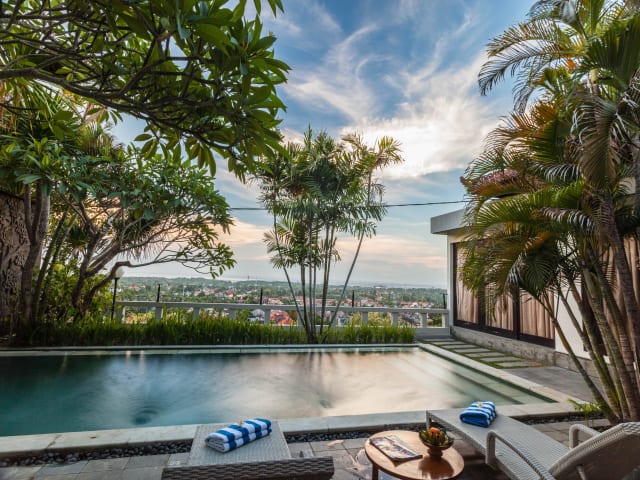 Das The Kawan Jimbaran bietet moderne balinesische Villen mit privatem Pool, kostenfreiem WLAN und persönlichem Butler in exponierter Lage mit Blick auf die Bucht von Jimbaran. Genießen Sie den Luxus und die Privatsphäre dieser elegant eingerichteten Villen, die mit einer voll ausgestatteten Küche und einem Wohnzimmer mit offenem Schnitt ausgestattet sind. Entspannen Sie sich im Bad mit Badewanne und lassen Sie sich auf Ihrem Zimmer mit Massagen oder Wellnessanwendungen verwöhnen. Das Hotel bietet auch einen Tourenschalter, der Tagesausflüge und einen Mietwagen organisieren kann. Kostenfreie Parkplätze und ein kostenloser Wäscheservice stehen ebenfalls zur Verfügung. Lassen Sie sich von einem persönlichen Koch in Ihrer Villa kulinarisch verwöhnen.