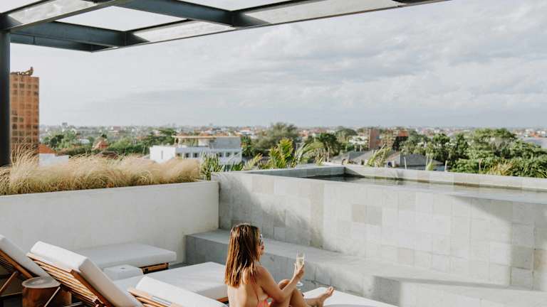 Enjoy complimentary access to our gym and rooftop pool, offering stunning views of the Berawa neighborhood, during your stay at The Komu. The lively area around the hotel is perfect for sports and entertainment, whether you’re surfing at the beach or checking out local fitness studios and yoga centers.