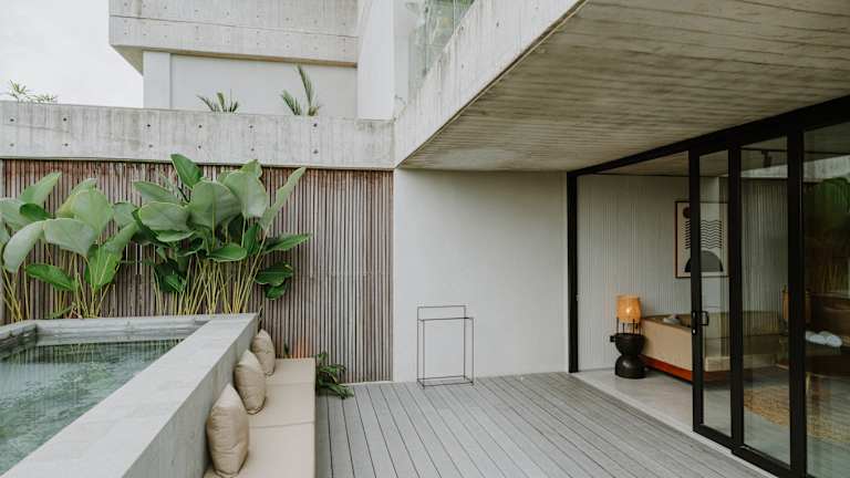 A captivating blend of Japanese-inspired design and contemporary chic, our rooms range from convenient comfort to impressive luxury, all with a unique touch of indulgence. From spacious terraces, lush gardens, and plunge pools soaked in natural daylight, to stylish decor, industrial finishings, and flexible living spaces. Custom-made furniture crafted from recycled material adds an eco-conscious edge to work and play areas, while sliding partitions, modular-system tables, and chairs add versatility. Deep bathtubs and a range of creature-comfort amenities combine for an enticing accommodation experience at The Komu. Your Bali home awaits.