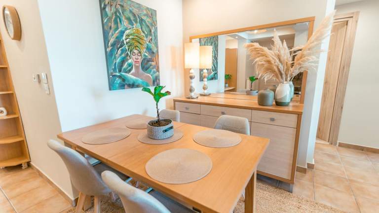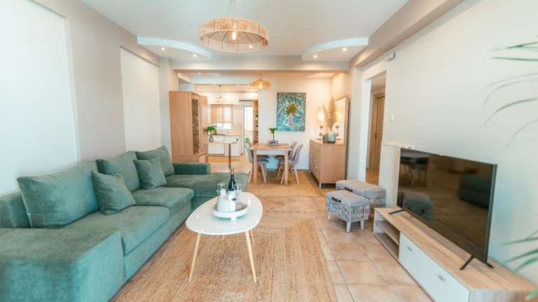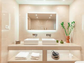 Die Ferienwohnung umfasst 3 Schlafzimmer, ein Wohnzimmer und eine voll ausgestattete Küche mit Kühlschrank und Kaffeemaschine. Die zwei Badezimmer sind mit einer Dusche und einem Haartrockner ausgestattet. Handtücher und Bettwäsche werden bereitgestellt. Die Unterkunft ist klimatisiert.