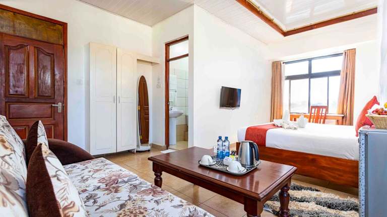 Das The Kyaka Hotel in Machakos bietet Unterkünfte zur Selbstverpflegung in einer freundlichen Atmosphäre. Genießen Sie regionale Gerichte im hoteleigenen Restaurant und entspannen Sie an der Bar. Die Zimmer und Apartments sind komfortabel eingerichtet und verfügen über kostenfreies WLAN. Das Hotel liegt in der Nähe des Busbahnhofs und bietet Parkplätze sowie rollstuhlgerechte Einrichtungen.