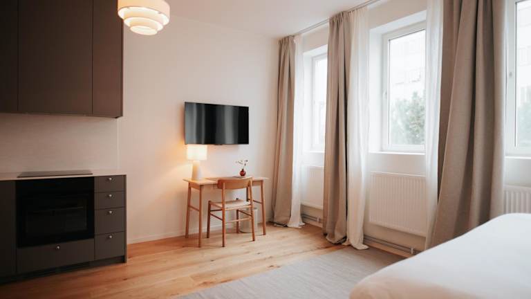 Die Zimmer der Unterkunft sind mit einem Flachbild-TV sowie einem eigenen Badezimmer ausgestattet, das eine Dusche und kostenlose Pflegeprodukte umfasst. Die Küchen bieten eine komplette Ausstattung, darunter einen Kühlschrank, Geschirrspüler, einen Ofen, eine Mikrowelle und eine Herdplatte. Zudem sind ein Toaster, eine Kaffeemaschine und ein Wasserkocher vorhanden. Die Zimmer sind schallisoliert und es wird eine tägliche Reinigung angeboten, die eventuell zusätzliche Gebühren verursachen kann.