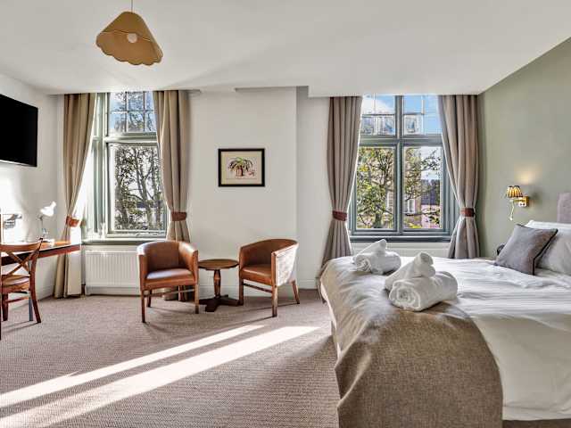 Das Hotel verfügt über ein Restaurant, in dem ein tägliches Frühstück serviert wird. Die Gäste können aus einer Vielzahl von Optionen wie englischen/irischen, veganen und glutenfreien Speisen wählen. Zusätzlich gibt es eine Bar, in der die Gäste entspannen und ihre Lieblingsgetränke genießen können.