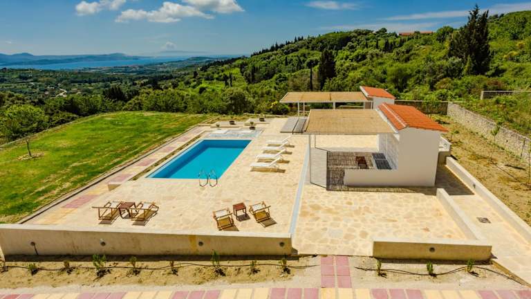 The Leaf House - Kefalonia bietet eine Unterkunft mit einem Außenpool, einem Garten und einer Terrasse sowie kostenfreiem WLAN. Die Villa umfasst 4 Schlafzimmer, ein Wohnzimmer, eine voll ausgestattete Küche und 5 Badezimmer. Zudem steht ein kostenloser Privatparkplatz zur Verfügung.