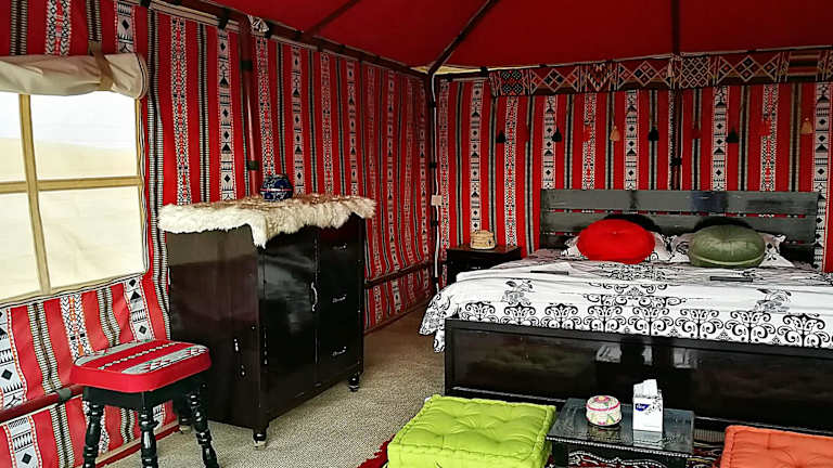 Das Legend Desert Camp in Fulayj al Mashā'ikh ist eine einzigartige Unterkunft, die Ihnen eine authentische Wüstenerfahrung bietet. Genießen Sie die Unterkunft in den Zelt-Lodges mit Terrasse und komplett ausgestattetem Badezimmer. Beginnen Sie Ihren Tag mit einem kontinentalen Frühstück und nutzen Sie die Grillmöglichkeiten. Zusätzlich stehen Ihnen eine Autovermietung und ein Shuttleservice zur Verfügung.