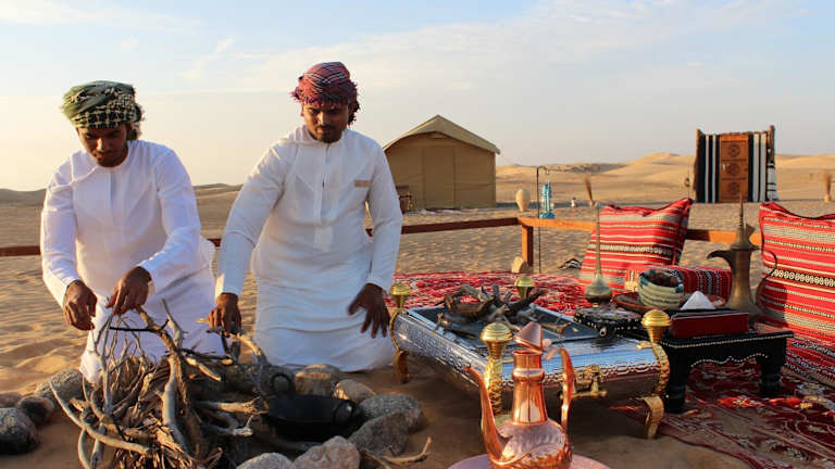 Die Unterkünfte im Legend Desert Camp sind in Zelt-Lodges untergebracht und verfügen über eine Terrasse, auf der Sie die Ruhe und Schönheit der Wüste genießen können. Jede Unterkunft verfügt über ein komplett ausgestattetes Badezimmer mit einer Badewanne und kostenfreien Pflegeprodukten.