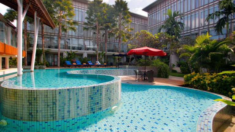 Das Lerina Hotel Nusa Dua in Nusa Dua bietet einen entspannten Aufenthalt mit einem Außenpool, einem Spa- und Wellnesscenter und kostenfreiem WLAN. Die Zimmer sind komfortabel ausgestattet und verfügen über eine Minibar, einen Safe und ein eigenes Bad. Das Hotel bietet auch ein Fitnesscenter, Konferenzeinrichtungen und einen Shuttleservice. Genießen Sie herzhafte Gerichte im hauseigenen Restaurant oder erkunden Sie die Restaurants in der Umgebung.