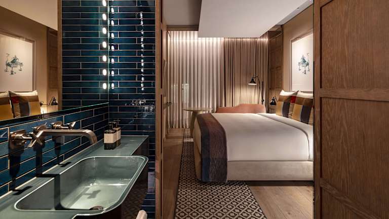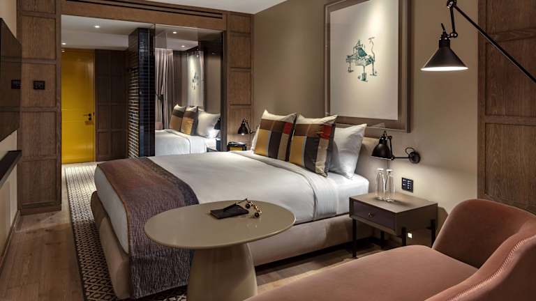 Das Hotel bietet insgesamt 350 luxuriöse Schlafzimmer und Suiten, darunter eine beeindruckende Penthouse-Suite im Turm mit Panoramablick. Jedes Zimmer ist stilvoll eingerichtet und verfügt über einen Tisch, einen Flachbild-TV und ein eigenes Bad. Gäste haben auch exklusiven Zugang zum Club nur für Bewohner, The Residence, der zusätzliche Annehmlichkeiten und Services bietet.