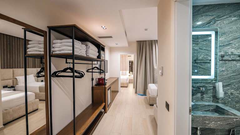 Die Gästezimmer sind klimatisiert und bieten einen Sitzbereich, einen Flachbild-TV mit Kabelkanälen sowie einen Safe. Jedes Zimmer verfügt über ein eigenes Badezimmer mit Bidet, kostenlosen Pflegeprodukten und einem Haartrockner. Alle Zimmer sind mit einem Balkon ausgestattet, einige bieten Poolblick. Bettwäsche und Handtücher sind in der Unterkunft vorhanden.