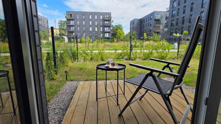 Die Ferienwohnung umfasst ein Schlafzimmer, ein Wohnzimmer sowie ein Badezimmer mit Dusche. Zur Ausstattung gehören ein Flachbild-TV, eine gut ausgestattete Küche mit Kühlschrank und Geschirrspüler sowie Handtücher und Bettwäsche. Die Wohnung bietet zudem eine Terrasse mit Gartenblick.