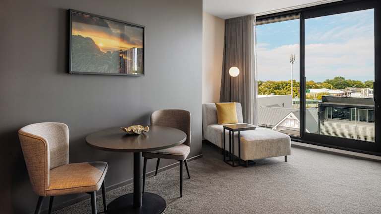 Die Zimmer sind klimatisiert und mit einem Sitzbereich, einem Flachbild-TV, einem Safe sowie einem eigenen Badezimmer mit Dusche und kostenlosen Pflegeprodukten ausgestattet. In einigen Zimmern sind ein Balkon und Bergblick vorhanden. Die Standardausstattung umfasst ein Doppelbett oder Kingsize-Bett, eine Kochnische mit Mikrowelle und Wasserkocher, sowie kostenfreies WLAN. Zur Grundausstattung gehören auch Bettwäsche und Handtücher.
