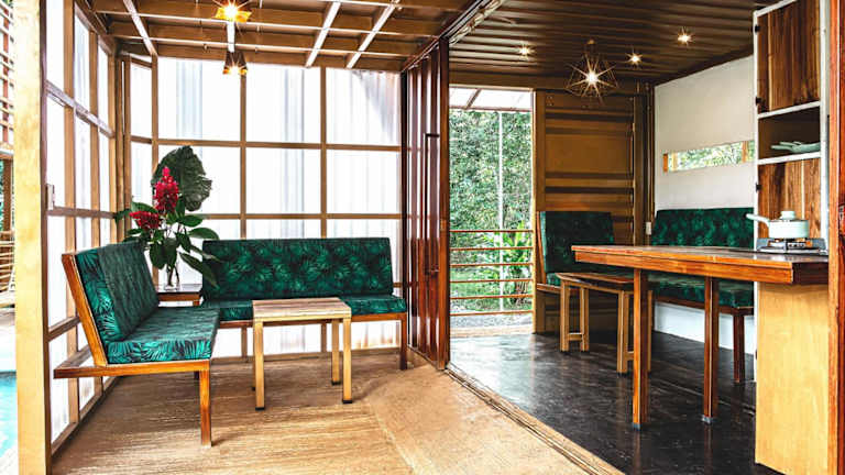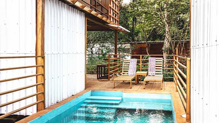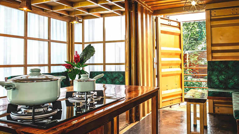 Die Wohneinheiten in The Mimosas sind mit einer Terrasse mit Poolblick ausgestattet und verfügen über eine Küchenzeile mit Kühlschrank und Herdplatte. Jedes Containerhaus hat ein eigenes Badezimmer sowie Sitzecken und einen Essbereich.