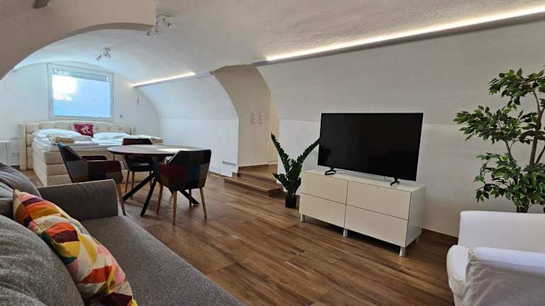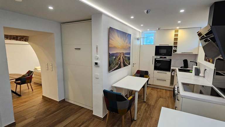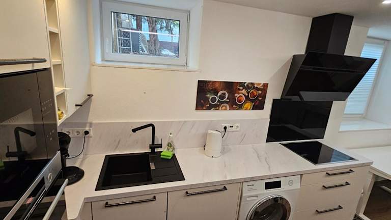 The Modern Cave Lodge - ComfyHome Apartments Stuttgart bietet gemütliche Übernachtungsmöglichkeiten in einem Garten mit kostenlosem Privatparkplatz. Die Unterkunft ist eine Ferienwohnung im Untergeschoss und verfügt über eine Klimaanlage sowie moderne Annehmlichkeiten. Es wird ein Self-Check-in angeboten, und es sind keine Mitarbeiter vor Ort.
