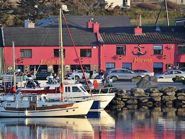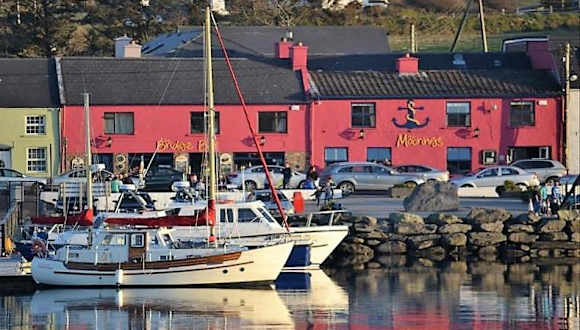 Das Moorings Guesthouse in Portmagee bietet elegante Zimmer mit luxuriösen Annehmlichkeiten wie Whirlpools und Kingsize-Betten. Das hauseigene Restaurant serviert frischen Fisch aus dem Hafen von Portmagee und bietet besondere Abende mit irischem Rindfleisch und lokalem Gemüse. In der Bridge Bar können Sie bei preisgekrönten Speisen traditioneller irischer Musik lauschen und tanzen.