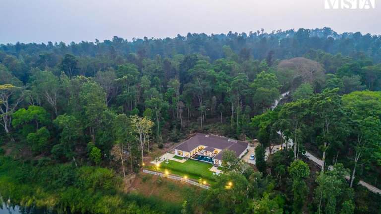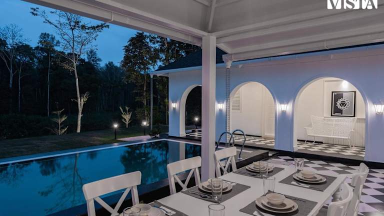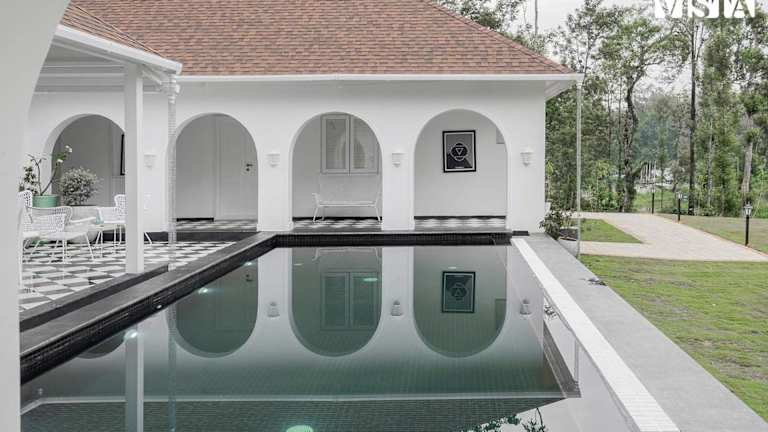 StayVista at Mudra Manor Coorg temperature controlled pool Villa bietet einen Außenpool, einen eigenen Pool und einen Garten. Die Villa ist klimatisiert und verfügt über 4 Schlafzimmer sowie 4 Badezimmer, die mit einem Whirlpool, einer Badewanne und kostenlosen Pflegeprodukten ausgestattet sind. Die Villa ist eine attraktive Option für einen Aufenthalt in der Natur.