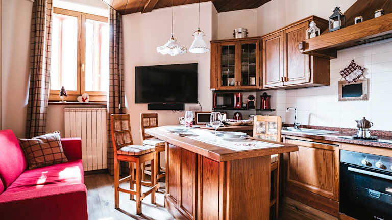 Die Ferienwohnung verfügt über ein Schlafzimmer, ein Wohnzimmer sowie eine voll ausgestattete Küche mit Kühlschrank und Kaffeemaschine. Sie beinhaltet zudem ein Badezimmer mit Bidet und Dusche. Handtücher und Bettwäsche werden bereitgestellt.
