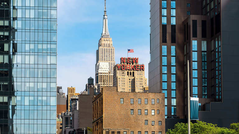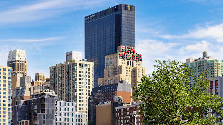 The New Yorker Hotel by Lotte Hotels ist ein Hochhaushotel im Art-déco-Stil mit 1014 Zimmern, verteilt auf 40 Etagen. Die Gäste werden an der 24-Stunden-Rezeption von mehrsprachigem Personal empfangen. Das Hotel bietet diverse Annehmlichkeiten wie WLAN, eine Gepäckaufbewahrung, einen Supermarkt, Geschenk- und Souvenirläden sowie einen Tourdesk.