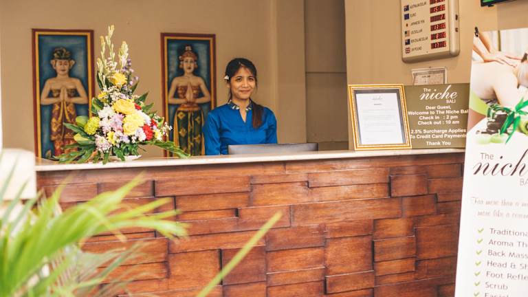 The Niche Bali bietet 35 Zimmer und ist ausgestattet mit einem Aufzug sowie einem 24-Stunden-Rezeptionsservice. Zu den Serviceleistungen gehören Gepäckaufbewahrung, ein Hotelsafe, eine Wechselstube, medizinische Betreuung und ein Transferservice. Das Hotel bietet WLAN-Zugang und eine Reihe von Geschäften. Ein Garten steht zur Entspannung zur Verfügung. Für Fahrzeughalter sind Parkplätze oder eine Garage vorhanden. Die Unterkunft umfasst außerdem ein Hallenbad, ein Außenpool (gegen Gebühr), eine Poolbar, und einen Konferenzraum. Das Hotel hat in 2010 eine umfassende Renovierung erfahren und bietet eine Nichtraucherumgebung.