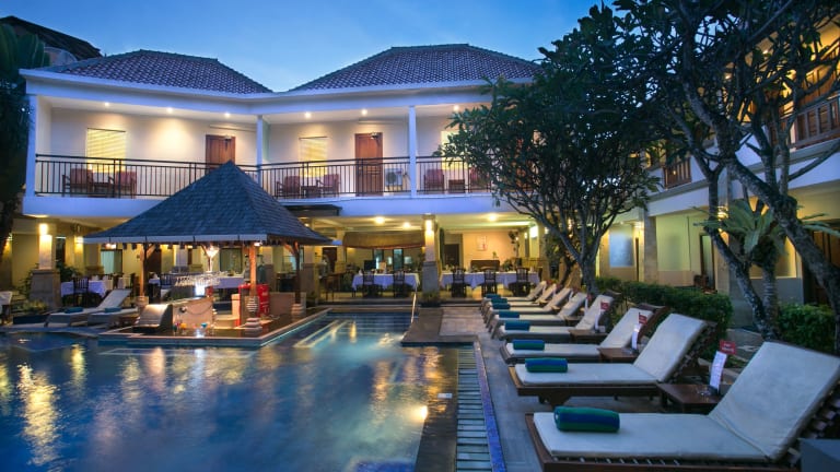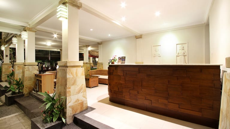 Das Hotel befindet sich in Jalan Legian Kuta, einem Ort auf Bali, der bekannt ist für exzellente Einkaufsmöglichkeiten, Restaurants und Vergnügungslokale. Der Strand ist etwa 500 Meter entfernt und das Stadtzentrum von Legian kann in rund 5 Minuten zu Fuß erreicht werden. Der Flughafen Ngurah Rai liegt ca. 10 km entfernt.