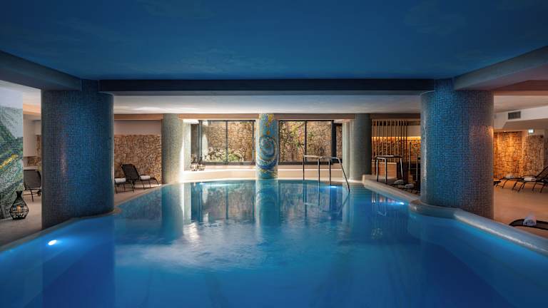 Das Hotel verfügt über einen modernen Wellnessbereich mit einem beheizten Außenpool, einem Indoorpool, einem Fitnessraum, einer Sauna, einem Dampfbad und einem Whirlpool. Es gibt außerdem einen Miniclub für Kinder und die Möglichkeit, Fahrräder zu mieten, um die Umgebung zu erkunden.