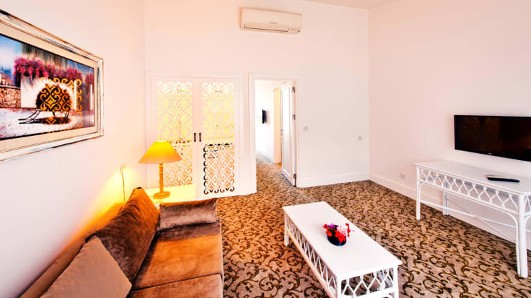 105 Zimmer gesamt, 250 insgesamt Betten, 10 Suiten, 2 Zimmer mit Verbindungstür, 44 Standardzimmer, 51 Zimmer-Apartments. Meer, Pool, Garten und die Berge. Direktwahltelefon, Minibar, Safe, Tee- / Kaffeekocher, Sat-TV, Klimaanlage, Dusche, WC, Föhn, Bad, Fön, Kosmetikspiegel, TV, Sat-TV, Internet-Anschluss, elektronische Türschlösser erhältlich