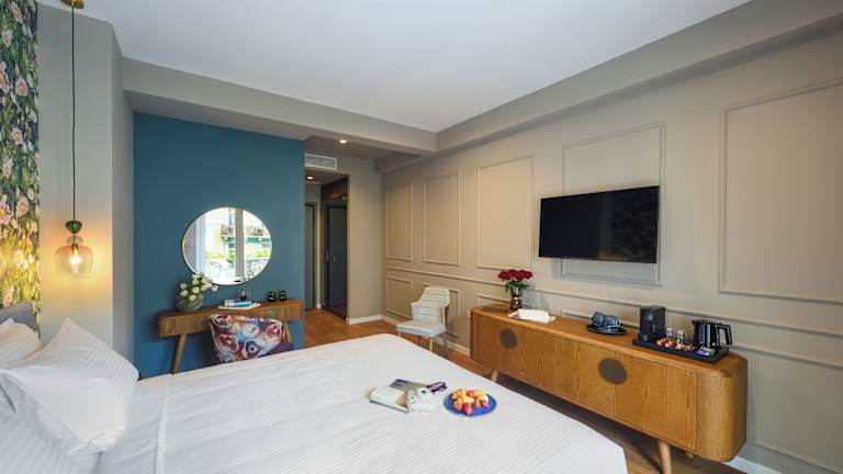 Die Zimmer sind klimatisiert und verfügen über einen Kleiderschrank, eine Kaffeemaschine, einen Kühlschrank sowie einen Safe. Jedes Zimmer ist mit einem Flachbild-TV und einem eigenen Badezimmer mit Dusche ausgestattet. Einige Zimmer bieten einen Balkon oder einen Stadtblick. Die Ausstattung umfasst auch Bettwäsche und Handtücher.