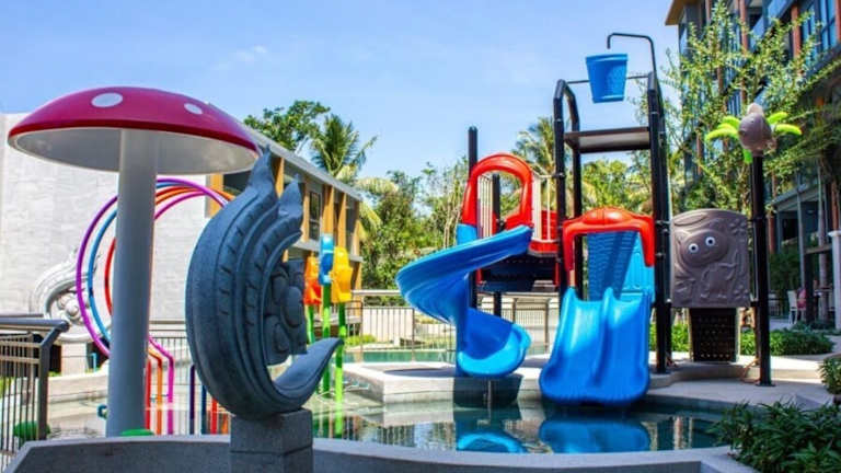 Die Freizeitmöglichkeiten umfassen einen Außenpool sowie ein Fitnesscenter. Der Strand ist in der Nähe, wodurch Strandaktivitäten wie Fitness am Wasser möglich sind. Es gibt Spielgeräte für Kinder im Garten.