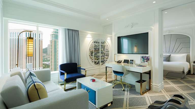 Die geräumigen Zimmer im The Parisian Macao sind im zeitgenössischen französischen Stil gestaltet und bieten modernen Komfort. Jedes Zimmer verfügt über einen Flachbild-Kabel-TV, eine Minibar und einen Safe. Das Badezimmer ist mit einer Badewanne und einer separaten Dusche ausgestattet und bietet luxuriöse Pflegeprodukte. Einige Zimmer bieten zudem einen atemberaubenden Blick auf die illuminierte Eiffelturm-Nachbildung und eine voll ausgestattete Minibar.