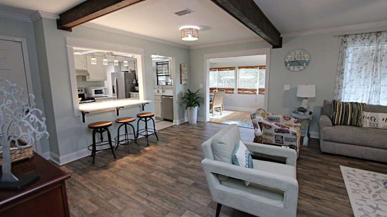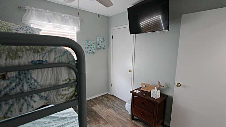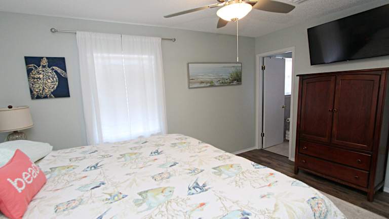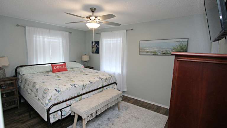 Das The Peaceful One home bietet ein Schlafzimmer mit komfortablem Bett und klimatisierter Umgebung. Die voll ausgestattete Küche verfügt über einen Kühlschrank und einen Backofen, so dass Sie Ihre eigenen Mahlzeiten zubereiten können. Ein TV und ein gemütlicher Sitzbereich stehen ebenfalls zur Verfügung. Das Ferienhaus verfügt zudem über zwei Badezimmer mit Dusche. Handtücher und Bettwäsche werden gestellt, um Ihnen einen angenehmen Aufenthalt zu ermöglichen.