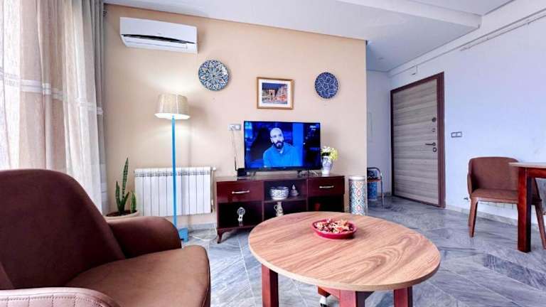 The Pearl Apartment Hammam Sousse WIFI bietet klimatisierte Übernachtungsmöglichkeiten mit einer Terrasse und einem Balkon, sowie Stadtblick. Die Ferienwohnung ist mit einer Veranda/Pati ausgestattet und bietet Platz für mehrere Personen.